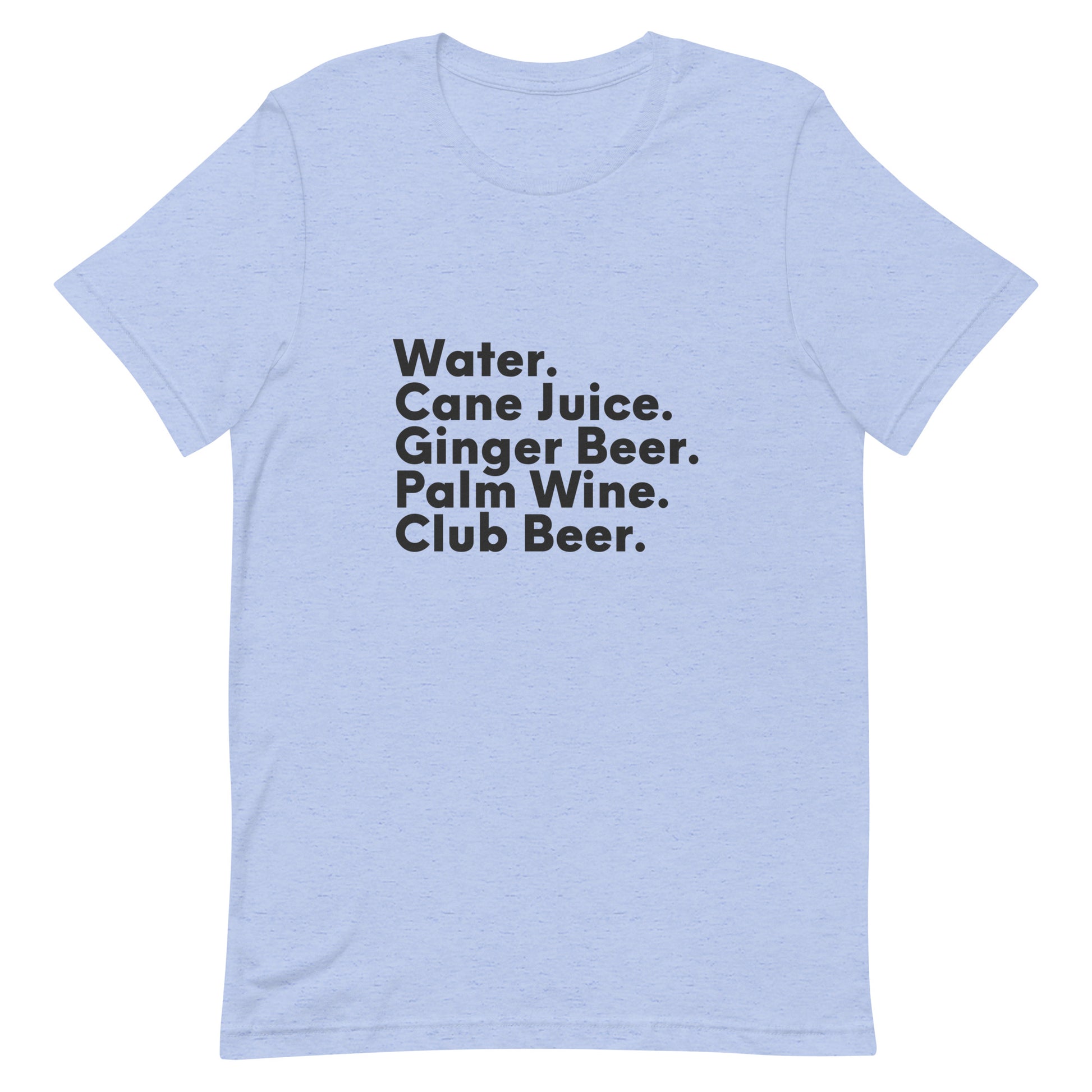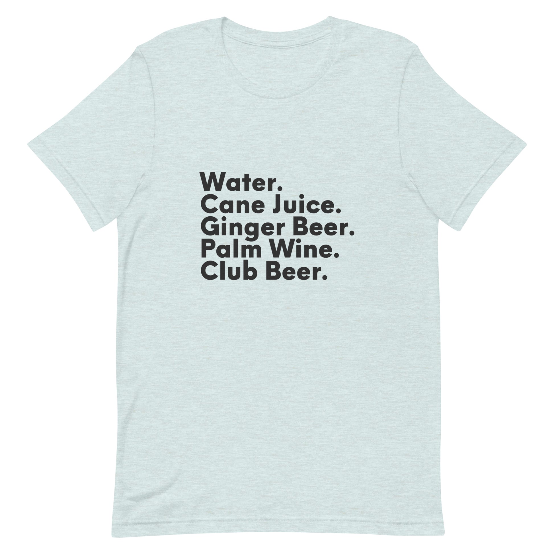 This crew neck t-shirt pays homage to the African diaspora. It highlights African history and cuisine honing in on the beverages that have kept our cultures and communities connected across taste buds, century-long timelines and borders.